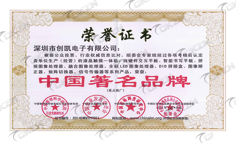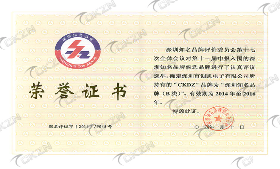 深圳知名品牌榮譽證書