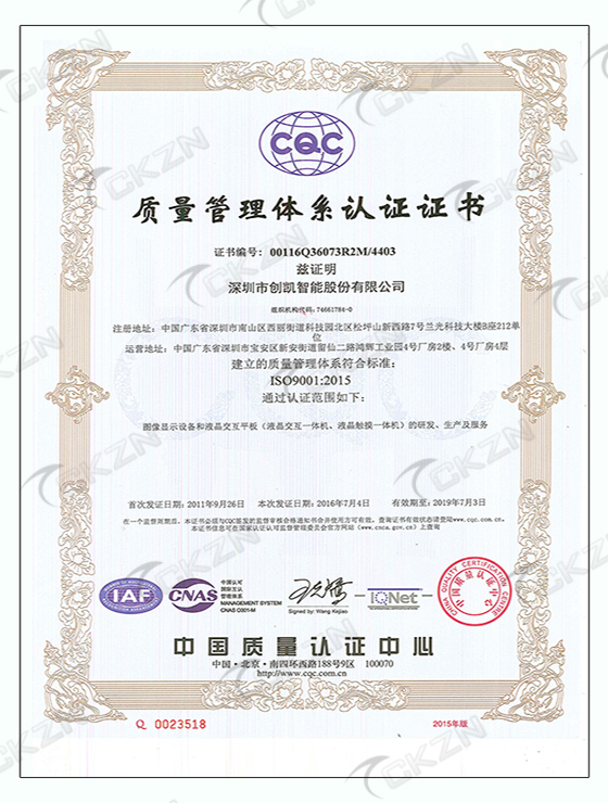 ISO9001中文證書
