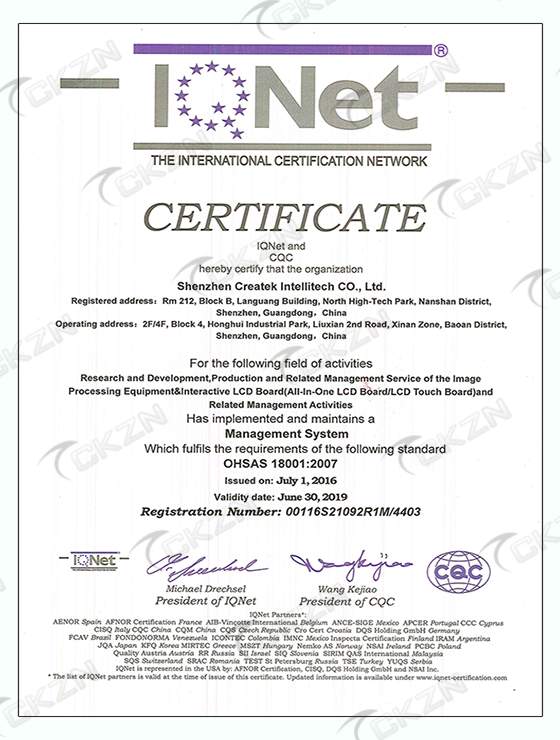OHSAS18001-IQNET證書