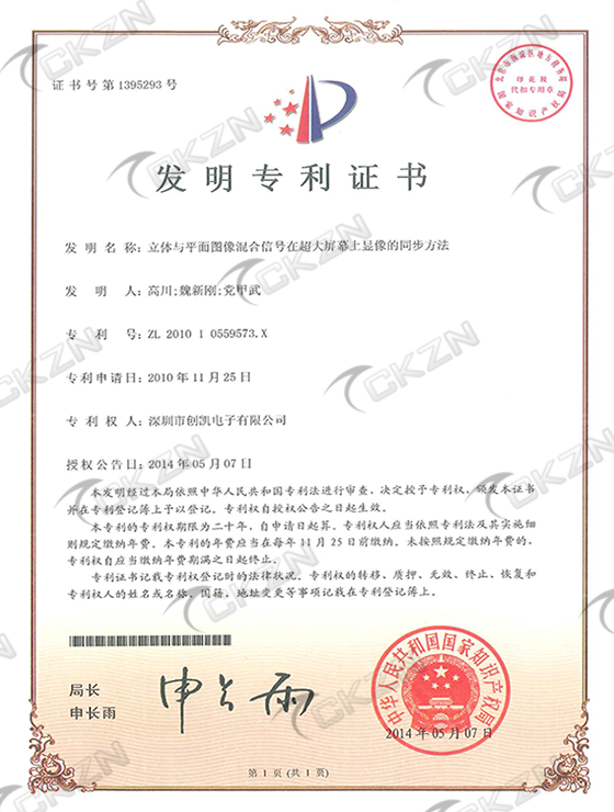 立體與平面線混合信號在超大屏幕上顯像的同步方法